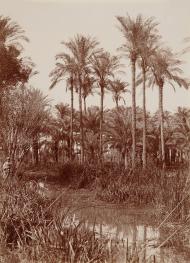 A tranquil rural moment in Al-Tawila Village, Faqous, Sharqia Governorate, in 1885, where palm trees, dirt roads, and a simple life unfolded peacefully with time.
