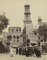 The moment worshippers exited the Mosque and Madrasa of Sultan Qalawun in Cairo, 1888