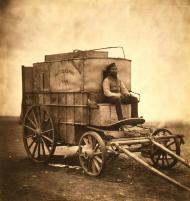 Marcus Sparling seated on Fenton's photographic van, Crimea 1855