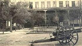 The courtyard of the Military School in Damascus in the early 20th century, where battalions trained and officers honed their skills in an atmosphere of discipline and military education.