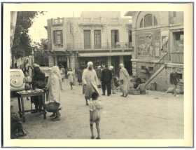 Street scene in Morocco, 1947 — a glimpse into daily life filled with movement, trade, and tradition amid the charm of old Moroccan architecture.